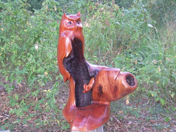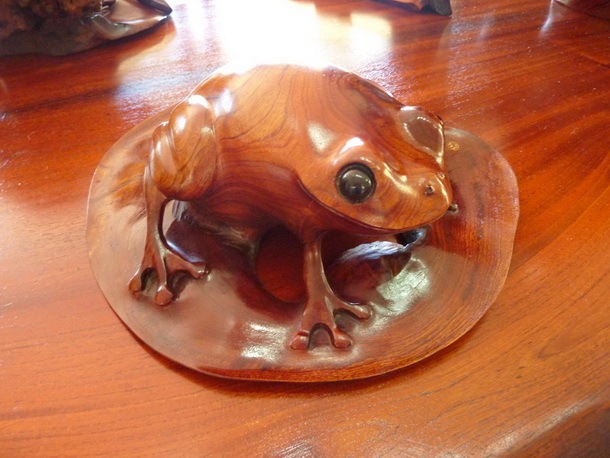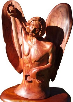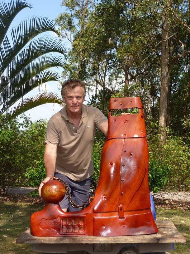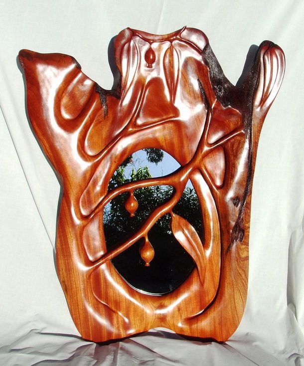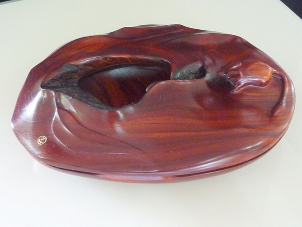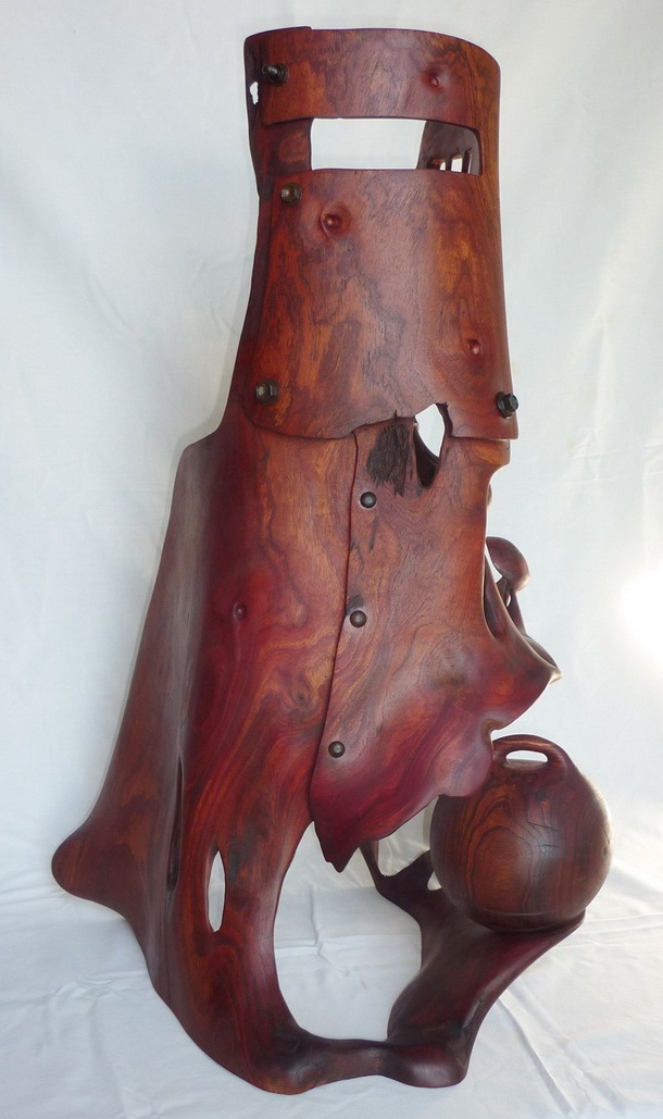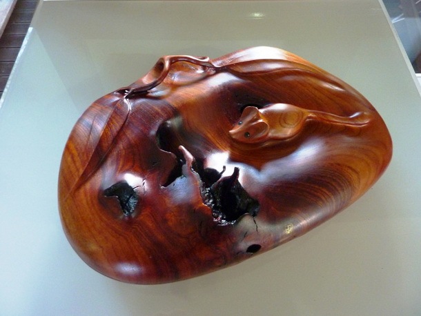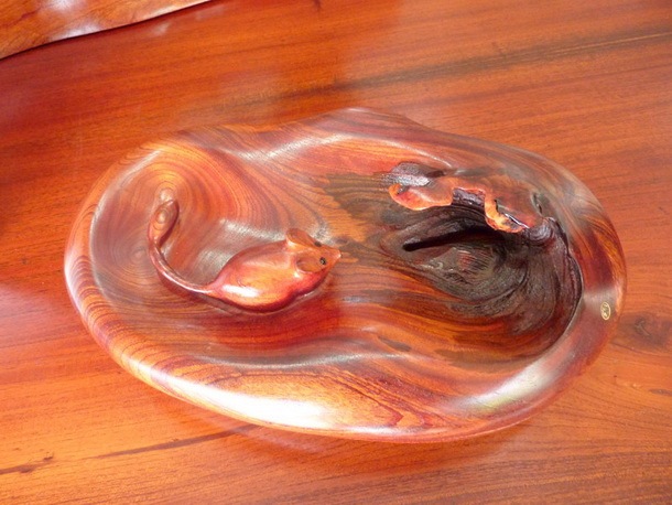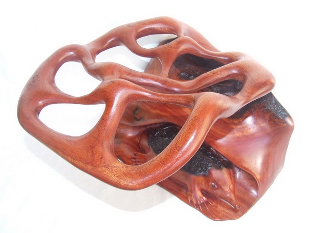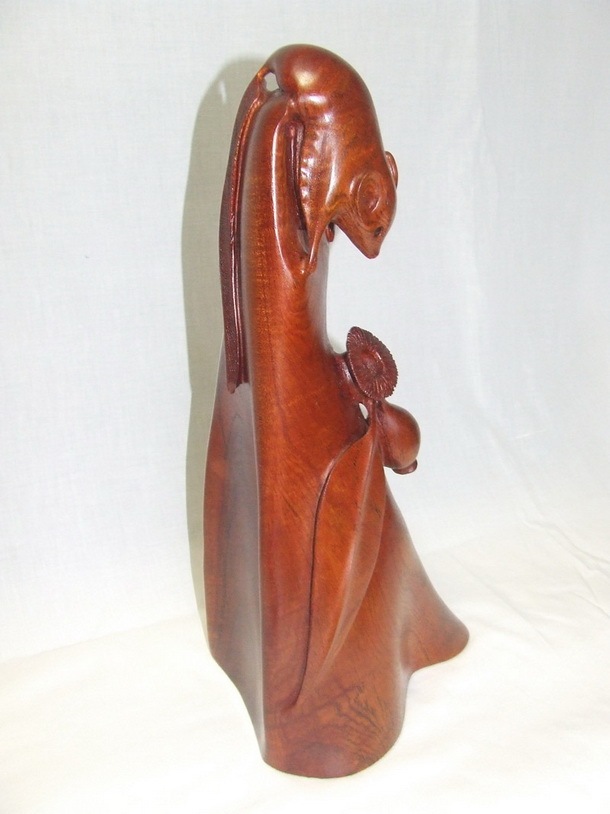 His skills are self taught and are constantly being perfected as the years go by. Whatever his latest creation might be he is able to bring out the natural rich colour and grain of the timber and work it into the story of each piece. He is versatile in his creations and each sculpture can be boasted as being a one-off because of the uniqueness of each piece of timber.