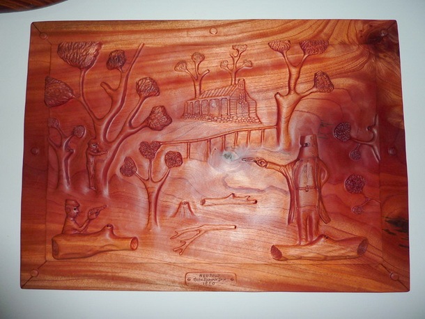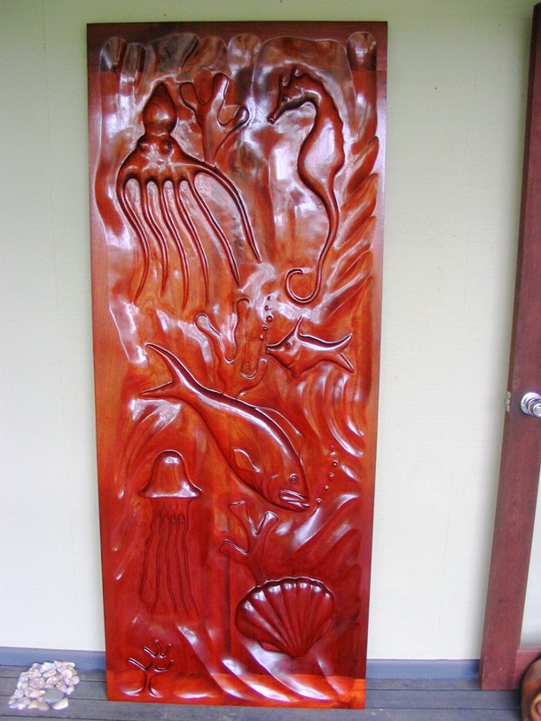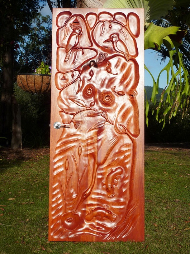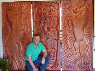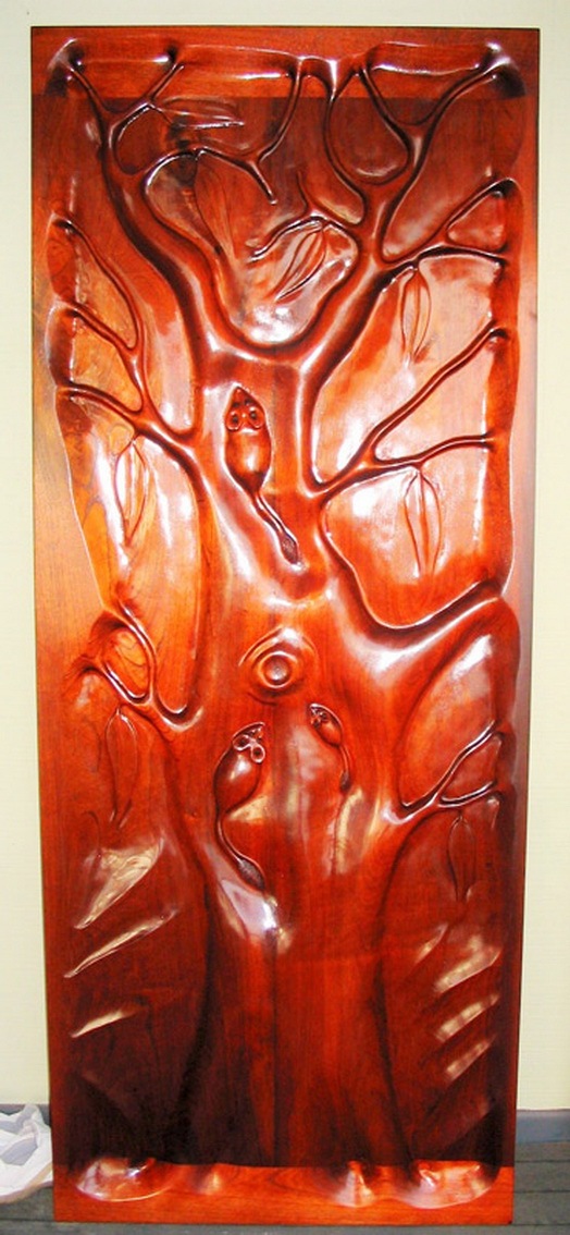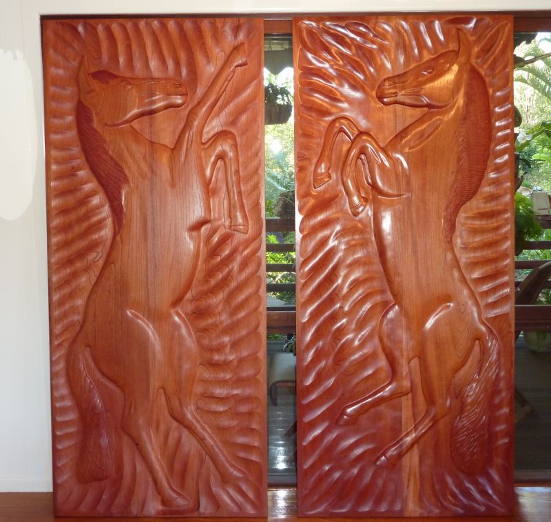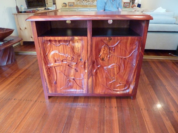 Jack’s skill in working the timber evolved while experiencing the many wonders of our Australian outback and wildlife. A combination of creativity, hard work and a deep respect for the timber he loves most results in the beautiful sculptured one-off pieces that he creates. His passion is creating wildlife and native scenes as well as one-off furniture pieces and carved Red Cedar doors.